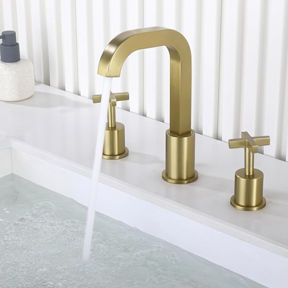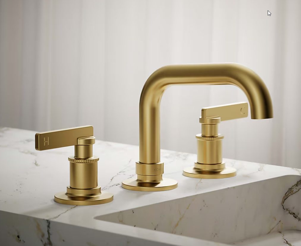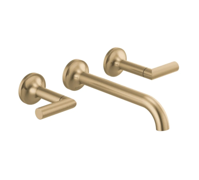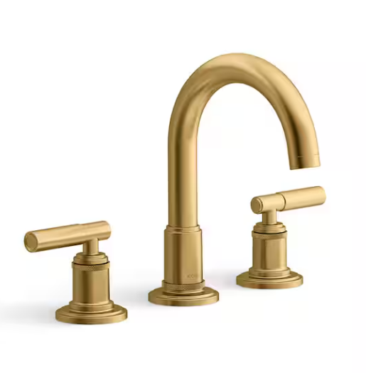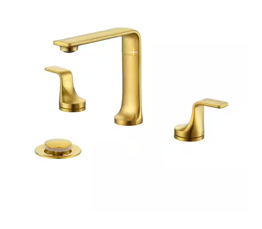 Vibrant Brushed Moderne Brass Widespread 2-handle Low-arc Residential Handle Bathroom Sink Faucet with Drain $823