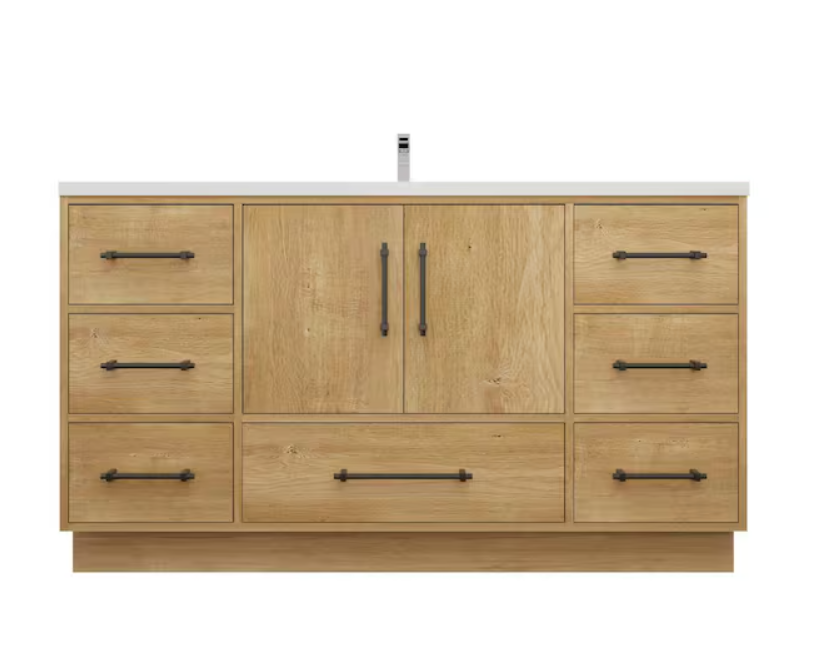 Install Vanity Cabinet - Width 59 ". 1 sink, 1 faucet