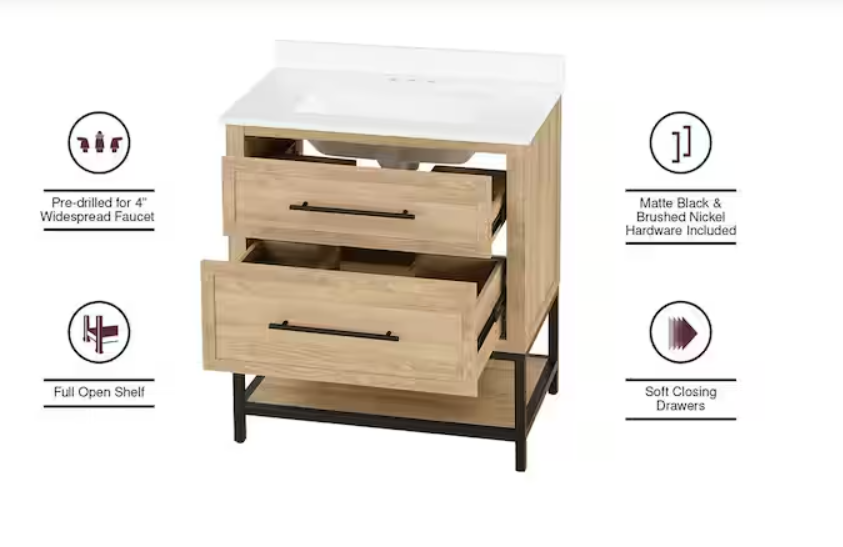 Install Vanity Cabinet - Width 30 ". 1 sink, 1 faucet