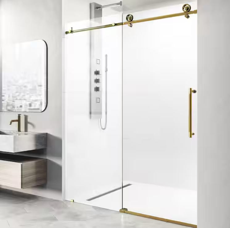 VIGO Elan Cass Aerodynamic 56 to 60 in. W x 76 in. H Sliding Frameless Shower Door in Matte Gold with 3/8 Clear Glass