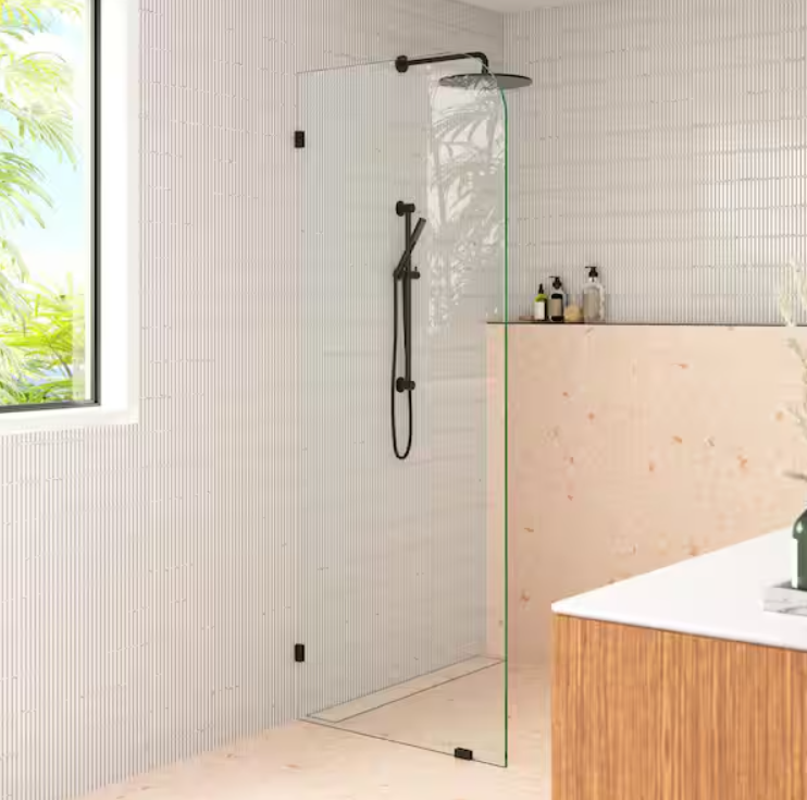 Vela 36 in. W x 78 in. H Frameless Fixed Single Panel Shower Door in Matte Black Without Handle