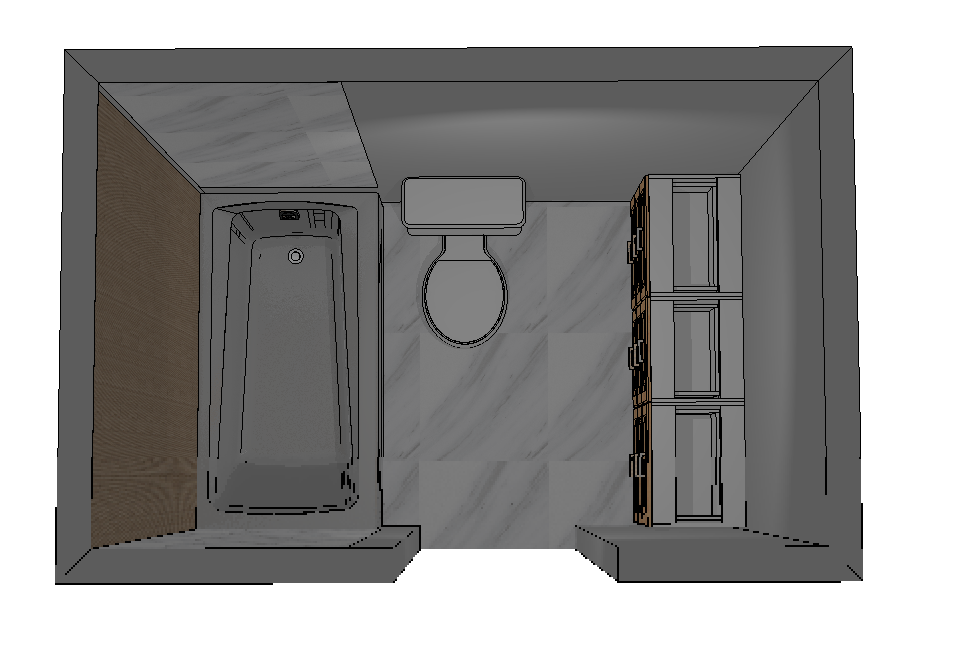 - Prepare new shower area with niche (full width 60", H 12") at the front wall (current vanity location).