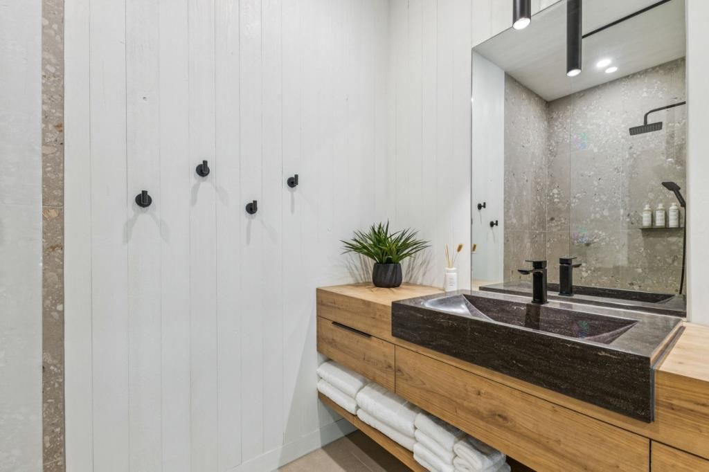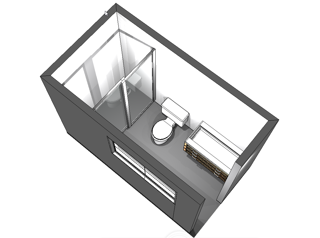 - Prepare new vanity wall on the right side where the shower is currently located (standing vanity)